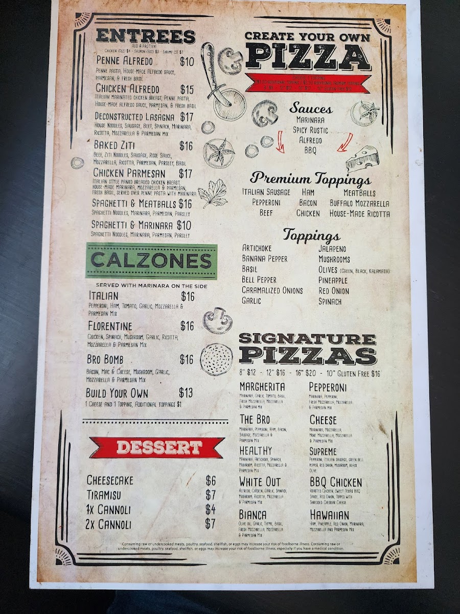 The true stars are their signature pizzas. These are crafted with high-quality ingredients; choices like Margherita and BBQ Chicken are crowd-pleasers, celebrated for their perfect crust and generous toppings. Customer feedback highlights the excellence in cooking and flavors: one patron exclaimed about the “excellent toppings, cheese, and crust.” Another noted the fun atmosphere and attentive service, making Dough Bros not just a meal, but a memorable dining adventure. Don't miss out on their cannolis for dessert, a sweet way to end your visit!